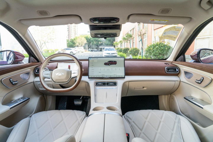 配置部分,风云A9L提供有前后驻车雷达、360度全景影像、全速自适应巡航、分段式不可开启全景天窗、皮质方向盘、10.25英寸液晶仪表、电动尾门、无钥匙启动、手机无线充电、前排座椅加热、自动大灯、256色氛围灯、9个安全气囊、前排座椅加热/通风、自动双区空调、后视镜电动折叠、电动尾门、前排双层静音玻璃等配置;高配车型还增加有悬架软硬调节、电动扰流板、全车无钥匙进入、前排座椅按摩、第二排座椅加热等配置。